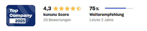 Seit 2013 haben 18 Mitarbeiter diesen Arbeitgeber mit durchschnittlich 4,2 Punkten bewertet. Dieser Wert ist höher als der Durchschnitt der Branche IT (4,0 Punkte).